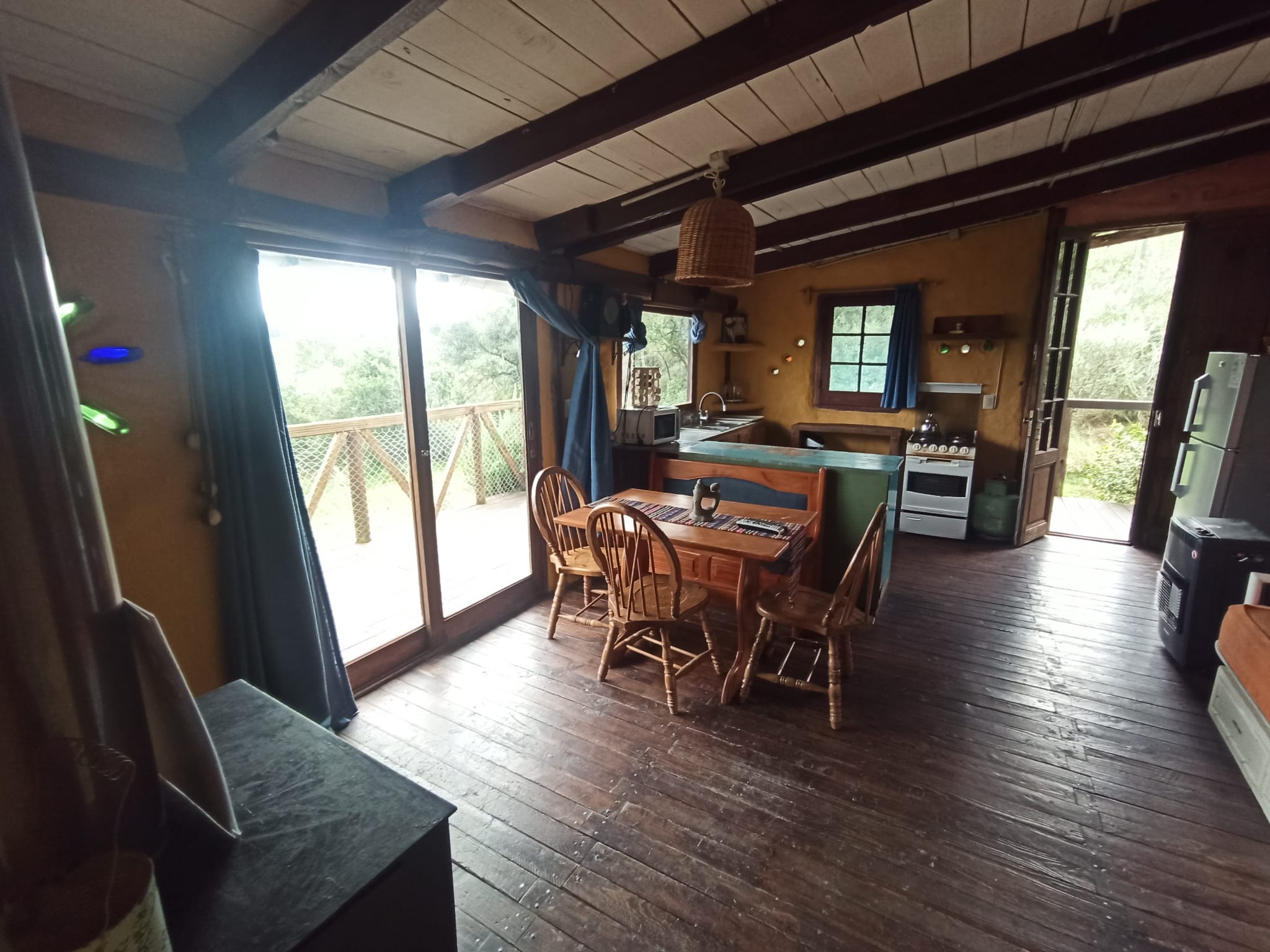 Domum Propiedades alquila anualmente o periodos largos casa en el poblado Sierra Ala de Villa Serrana con hermosa vista, acceso y privacidad. La casa cuenta con 1 dormitorio, 1 baño, living con estufa a leña con cocina integrada, balcón con vista al lago de la represa, parrillero exterior. La casa es de permacultura, lo que hace que sea cálida en invierno y fresca en verano.