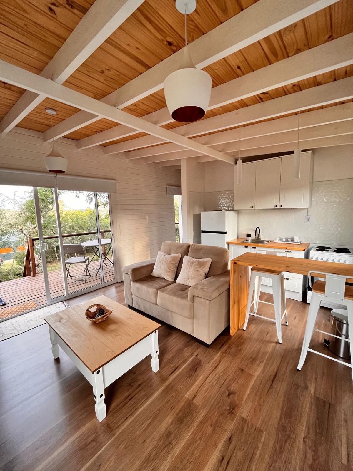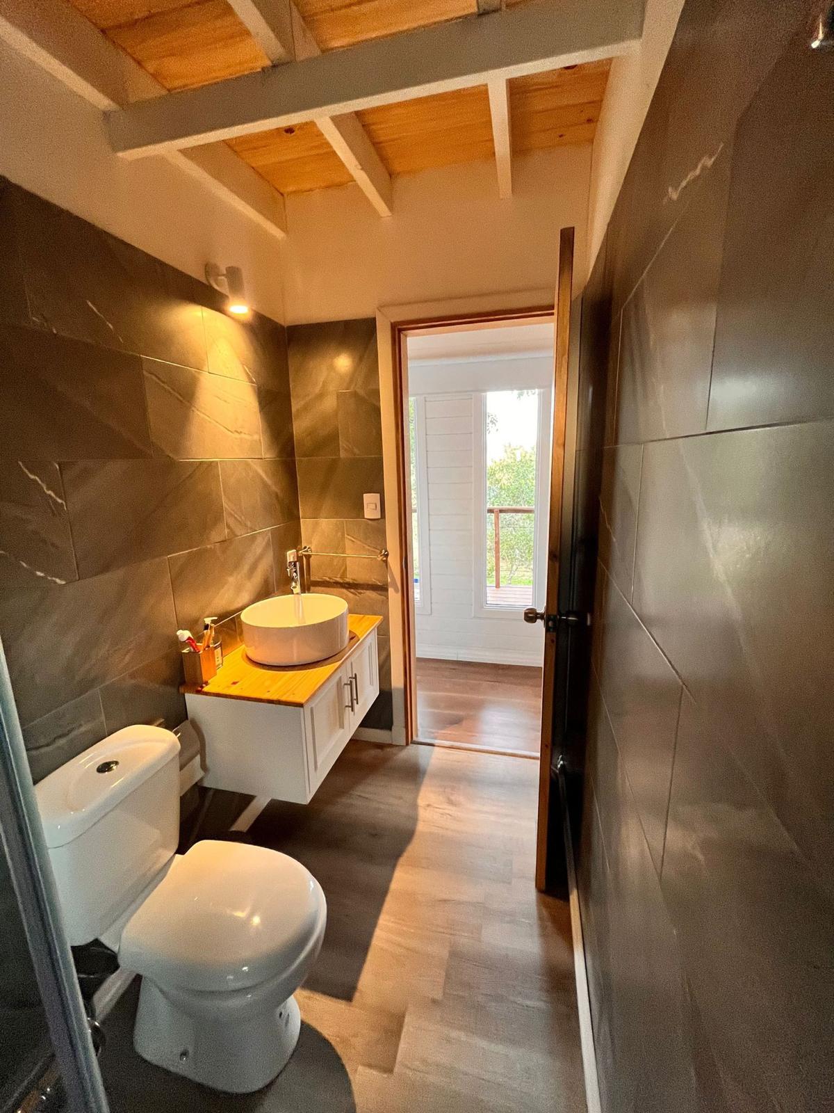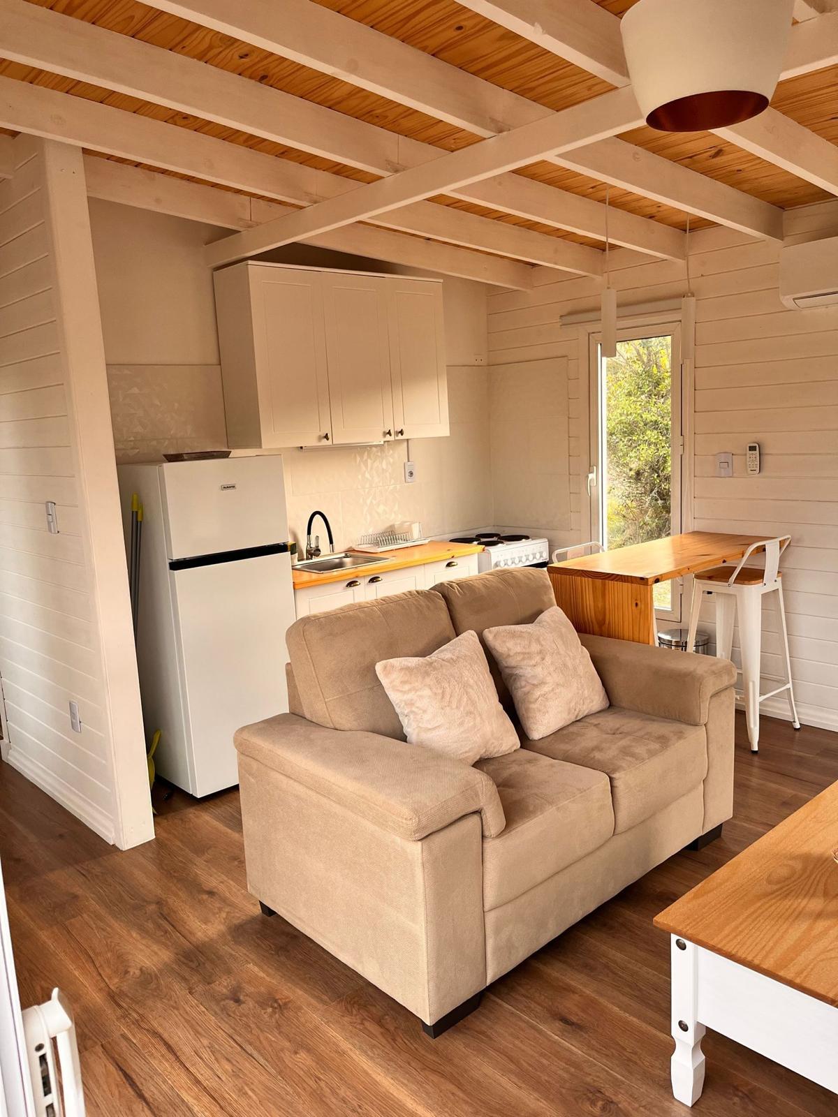 Domum Propiedades vende casa a estrenar en Las Cumbres de Villa Serrana. El terreno tiene fácil acceso, vegetación autóctona. La cabaña de 1 dormitorio, 1 baño, living cocina integrada, funcional y pronta para obtener una muy buena rentabilidad. 18 m2 de deck, vista panorámica, gran tanque de agua con almacenamiento de 2.000 litros. Apta para crédito bancario.